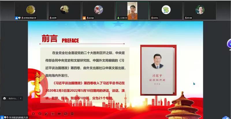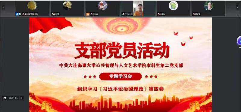 为进一步深入学习领会习近平新时代中国特色社会主义思想,系统掌握贯穿其中的马克思主义立场观点方法,8月31日,公共管理与人文艺术学院本科生第二党支部组织开展主题党日活动——集中学习《习近平谈治国理政》第四卷。活动通过线上形式进行,由支部书记焦兴华主持,本科生第二党支部全体党员、部分积极分子参与。