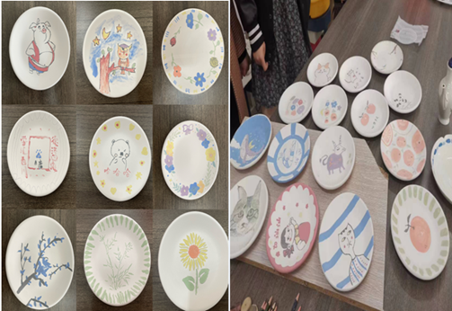 校工会主席王小虹应邀参加了盘子作画体验活动。