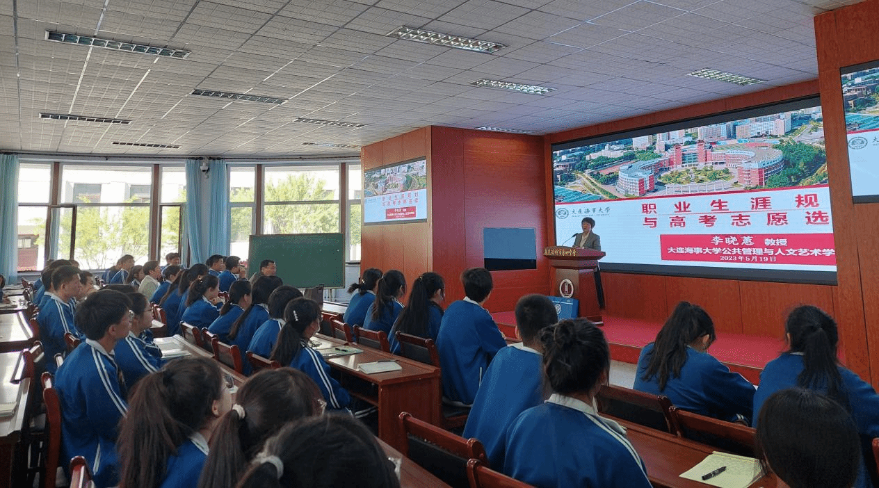 李晓蕙作题为“职业生涯规划与高考志愿填报”的科普讲座,她从职业生涯规划与高考志愿的关系、高考志愿填报的常见问题与基于职业生涯规划的高考志愿填报这三个维度展开,全方面地向同学们展示了高考志愿的重要性。付楚幽就我校办学特色、工作成效、校园风采等方面向学生们介绍海大,重点介绍了我校近年来在内蒙古自治区的招生计划以及各专业录取分数和录取位次情况。
