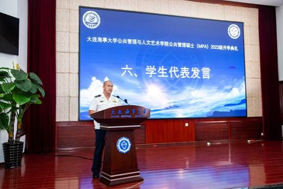 MPA研究生丁响代表2023级新同学发言。他分享了个人与海大的不解之缘及对海大精神的领悟,并表达了作为MPA新生回归校园的欣喜。他表示,希望与同学们在海大校园的求索修行,收获宽广的包容,收获嘉善的德行,收获团结的友情,收获理想的坚定。