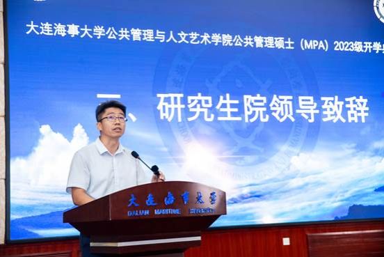 研究生院院长纪玉龙在致辞中对2023级131名MPA学生表示欢迎。他介绍了学校研究生教育,特别是MPA教育的发展历程及特色,肯定了MPA教育对高层次、复合型人才培养起到的积极作用。纪玉龙对学生提出了三点期望,即怀有家国情怀、发挥团队精神、注重脚踏实地。纪玉龙表示,研究生院作为学院研究生主管部门将持续关注并支持MPA项目的发展,与公共管理与人文艺术学院一起共同致力于MPA项目专业化、品牌化建设。