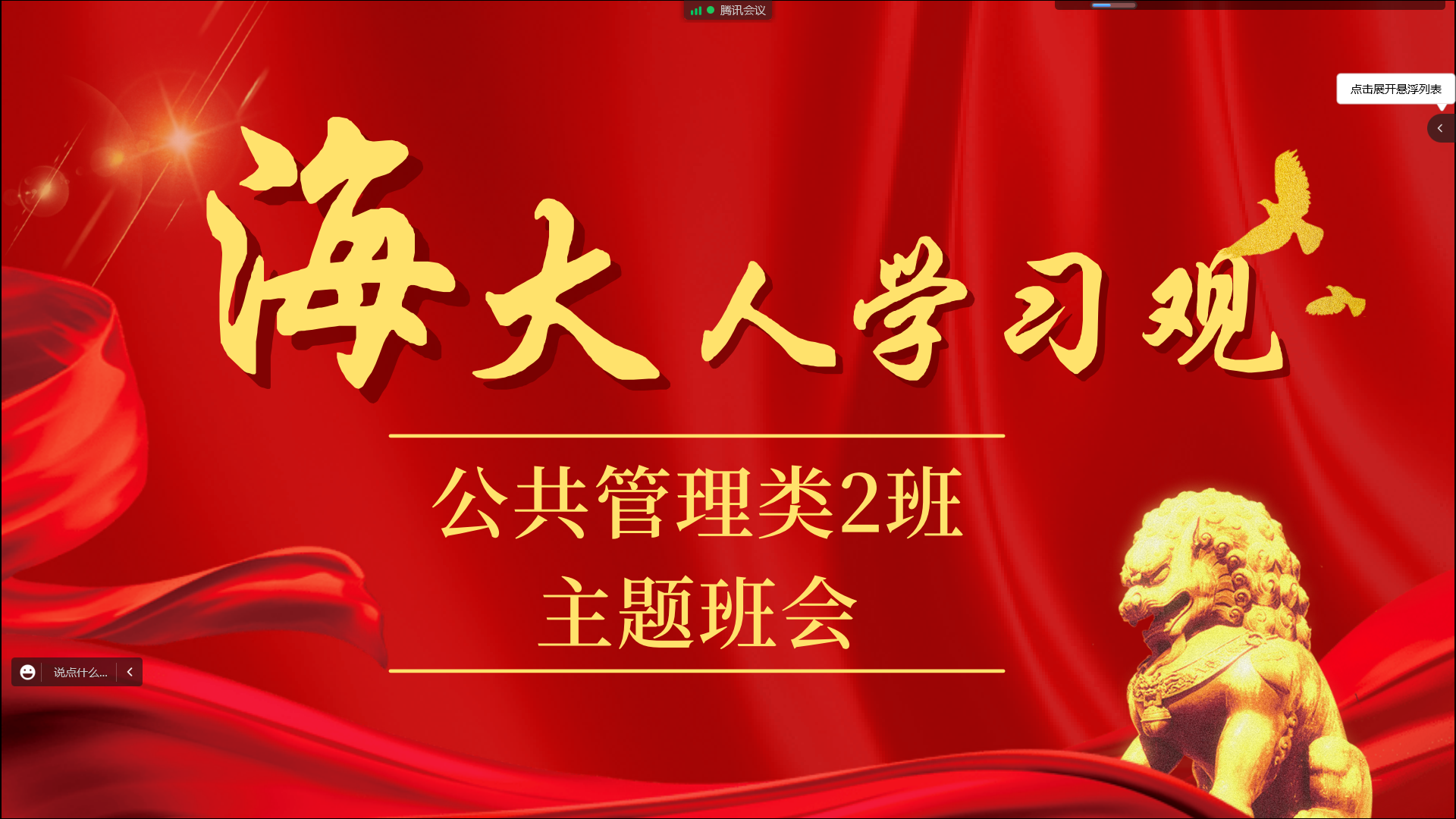 以各位同学主动分享为切入点,展开对学习观的讨论。随后,通过观看视频的方式,了解专家和学者对于学习观的看法,与会同学受益匪浅。最后,在班长的总结中结束了本次班会。