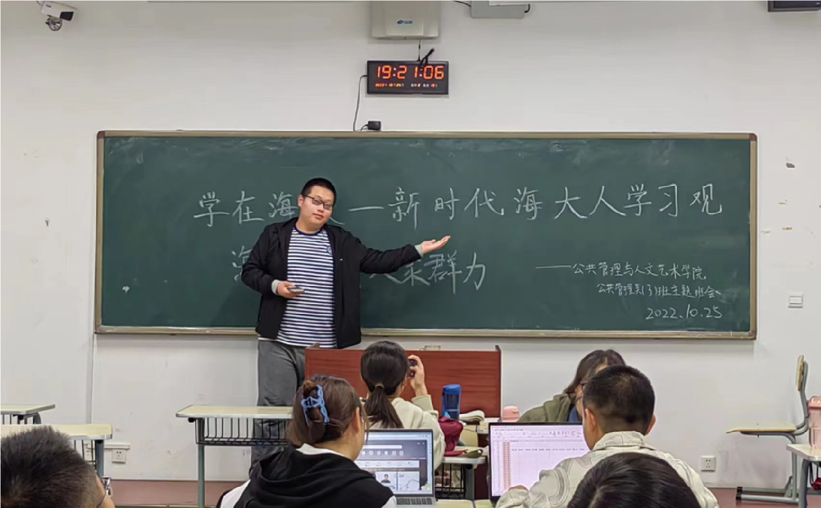 公共管理与人文艺术学院2022中队于10月下旬组织各班陆续开展形式多样、内容充实的主题班会,充分展示了“航海家的摇篮”里求学的人文学子,已经投入到不懈的学习奋斗中。