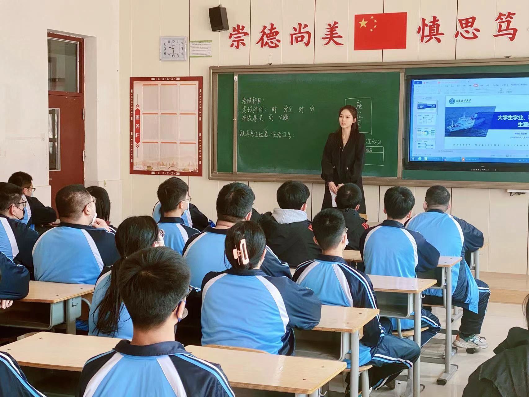 3月2日下午,学院指导员焦兴华、哲学系讲师付楚幽,前往辽宁省实验中学东戴河校区开展招生宣传。焦兴华从办学理念、专业建设、人才培养、半军事管理、就业前景等方面,对williamhill威廉希尔进行全面介绍,在场师生对海大先进的办学理念和丰富的育人成果表示了浓厚的兴趣。付楚幽开展生涯规划科普讲座,讲解了生涯的概念、生涯规划的意义、职业的选择与专业选择的关系等方面内容。