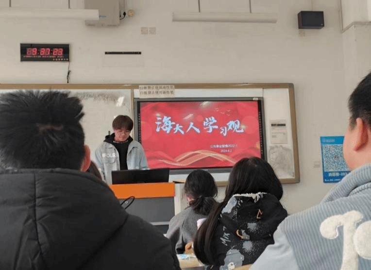 公共事业管理2022-1班班长王博彦带领同学从“是什么,为什么,怎么做”三个方面深入理解“海大人学习观”,使同学们对“海大人学习观”有了更加直观和全面的了解。随后,同学们积极上台分享自身学习心得,并展开经验交流。