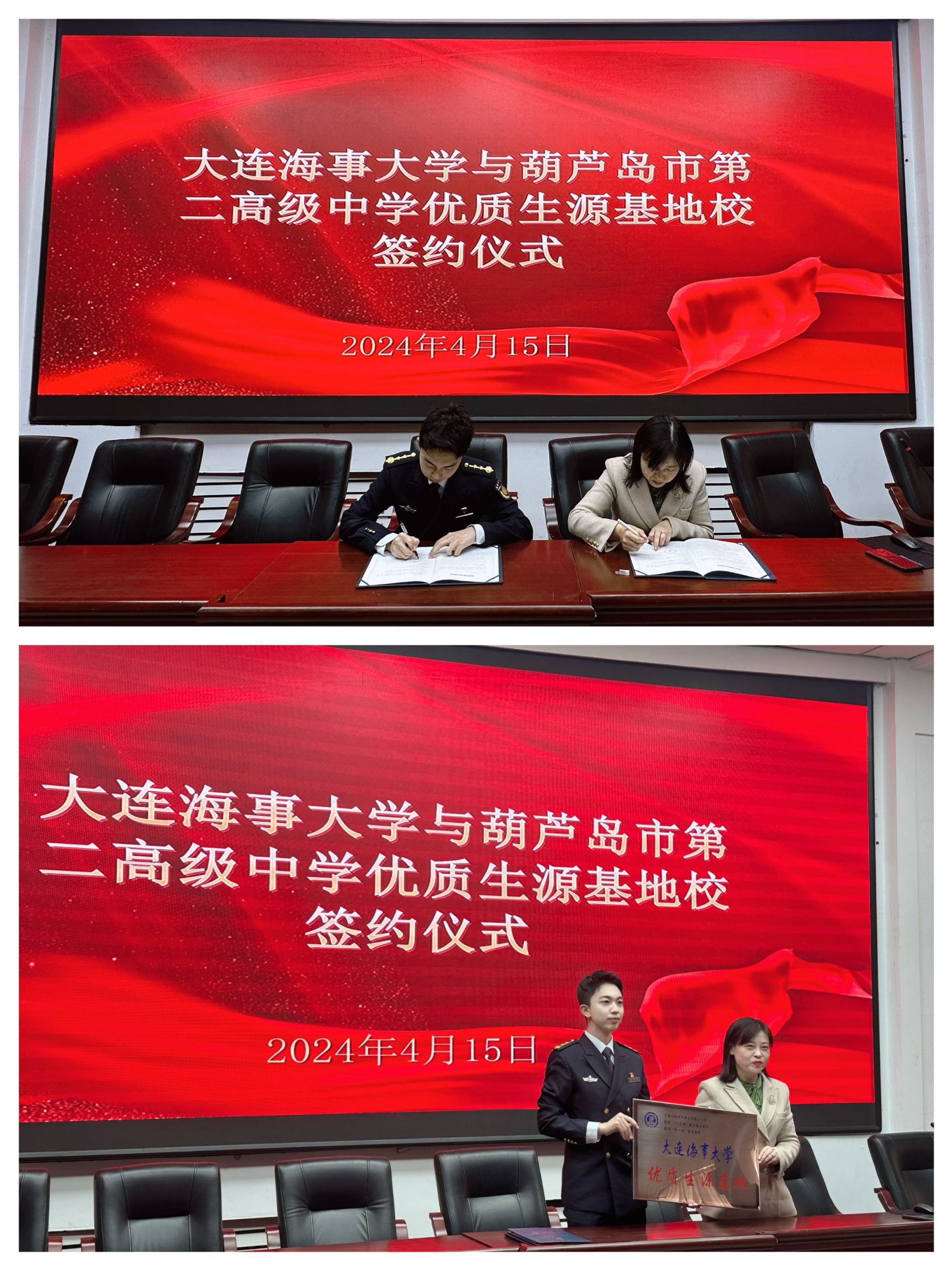 4月15日,焦兴华前往葫芦岛市第二高级中学,受到该校领导的亲切接待。校长、党委副书记肖艳楼、教务处主任张荣佳对海大的办学理念表示认可,并希望与海大建立长久的合作关系,推动双方深度交流,共同助力学生成长。随后,双方签订了《优质生源基地共建协议》,并举行授牌仪式。