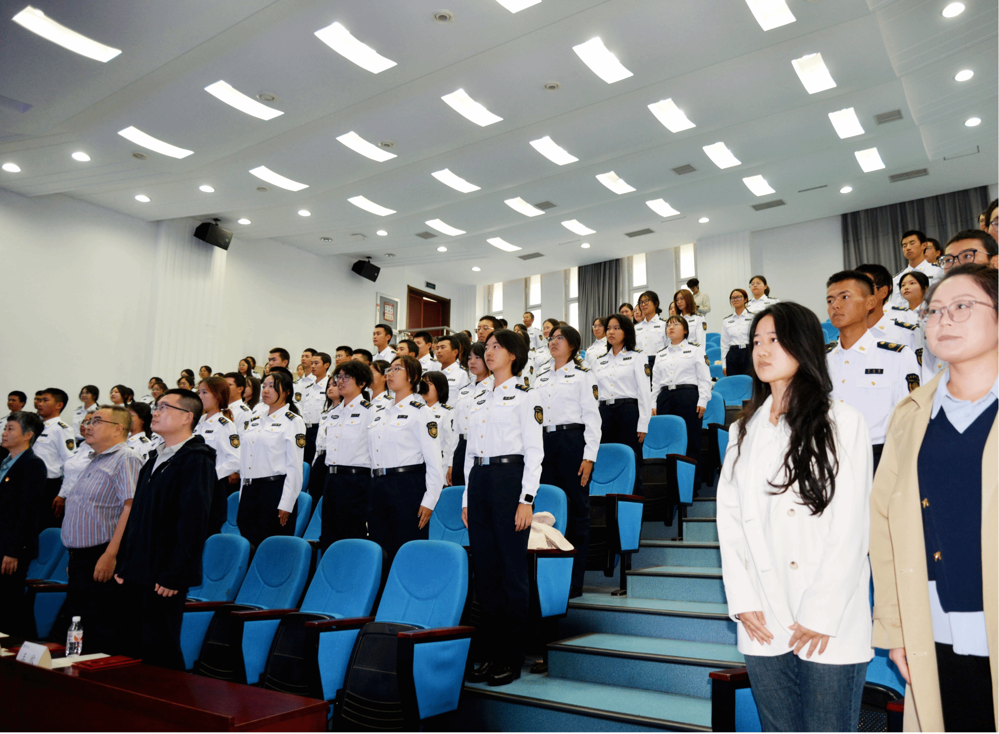 院长储建国首先致辞。储建国以“学在海大”为切入点,为新生讲解国家积极发展海洋强国政策的方向,提出处于中华复兴与时代变局的交汇点下,我们应时刻保持危机意识,顺应国家创造海洋文明的大趋势,在海洋文明建设中发挥责任意识,希望同学们将“高层之志”转化为内在动力,争做有内涵、创实践的人文学子!