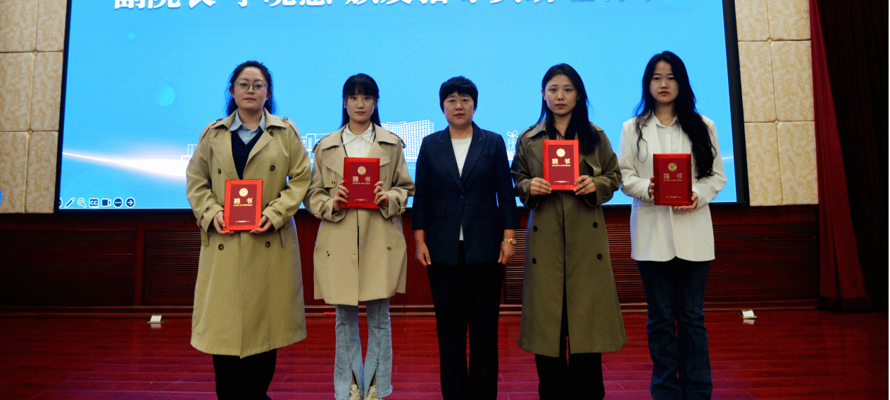 指导员焦兴华公布学院新一届学业指导与咨询中心主席团成员和朋辈导师名单,并由副院长李晓蕙为其颁发聘书。
