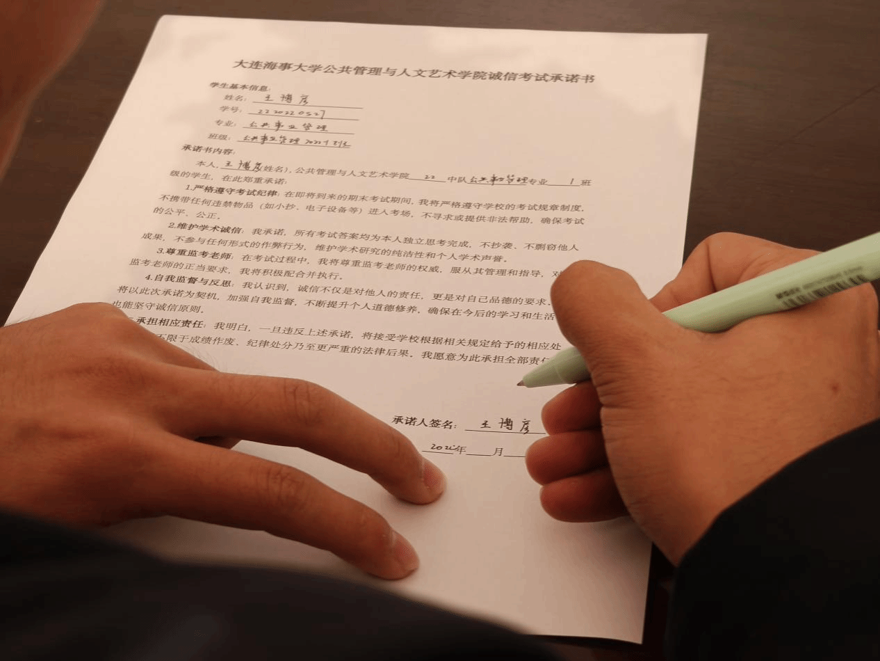 为构建“公平竞争、诚信考试”的良好氛围,加强学院学风建设,学院于2024年11月6日开展签署诚信考试承诺书活动,确保每一位同学都能够详细了解考场规则,端正考试态度,自觉遵守考风考纪,诚信应考。