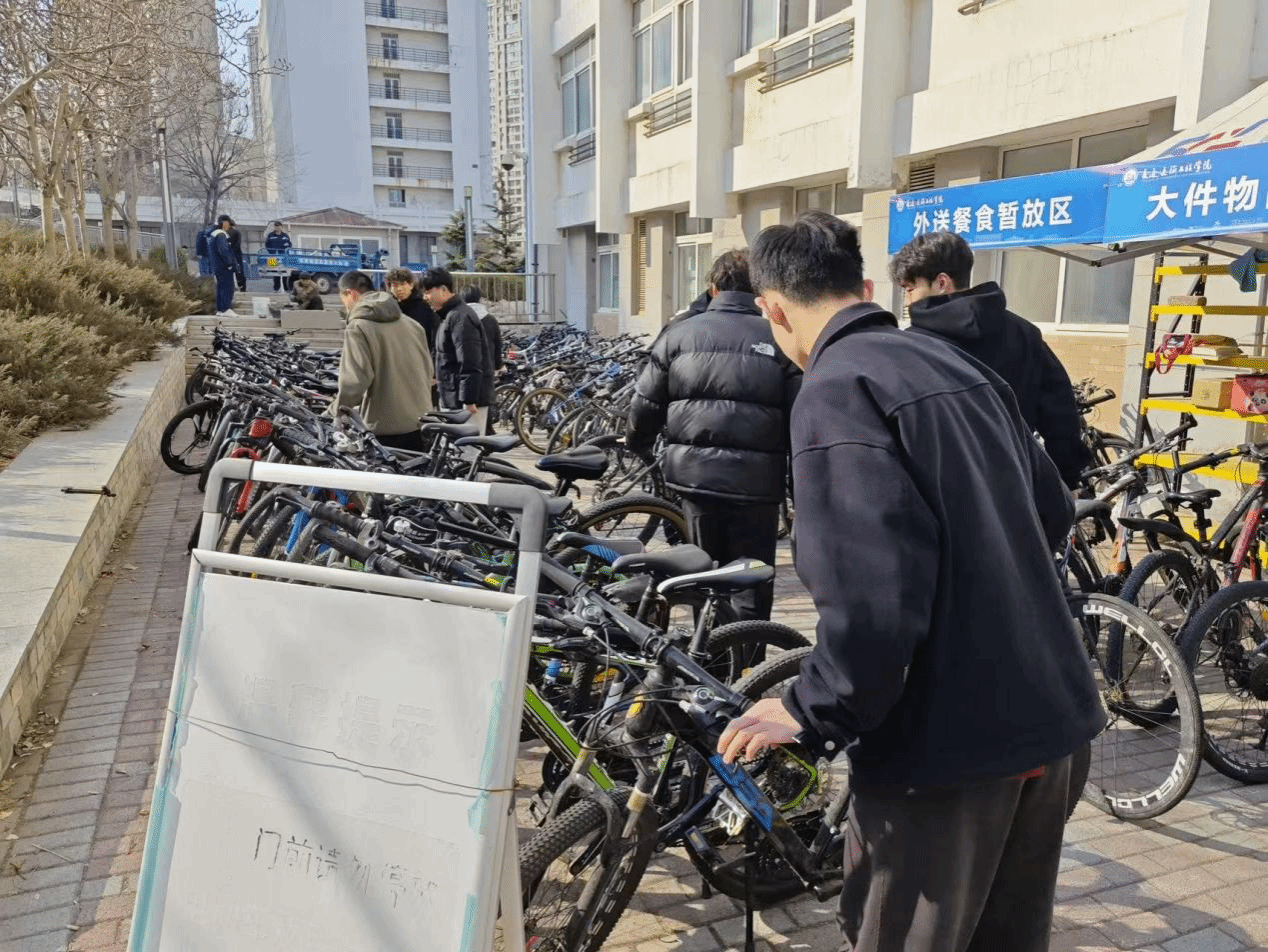 自行车是同学们在校园里上下课的重要交通工具,数量多且难以管理。加上大连独特的大风天气,经常将自行车吹倒,阻碍道路,自行车的摆放是校园环境治理的难题。4月14日,同学们分工协作将两个区域原本歪七扭八的自行车摆放整齐、擦拭干净,方便道路通行,美化校园环境。