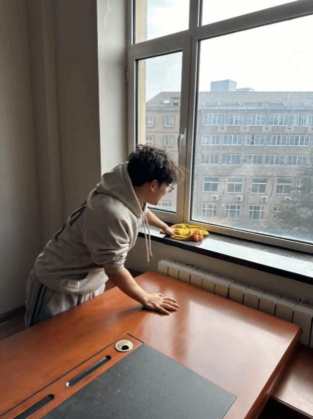 政治学与行政学的同学们认真细致,不放过每一个角落,连桌子的抽屉都进行细致清理。他们在劳动中创造价值,也在劳动中感悟知行合一。活动室的干净整洁,将使得使用者有更愉悦的心情,呼吸更新鲜的空气,劳动造福自己与他人。