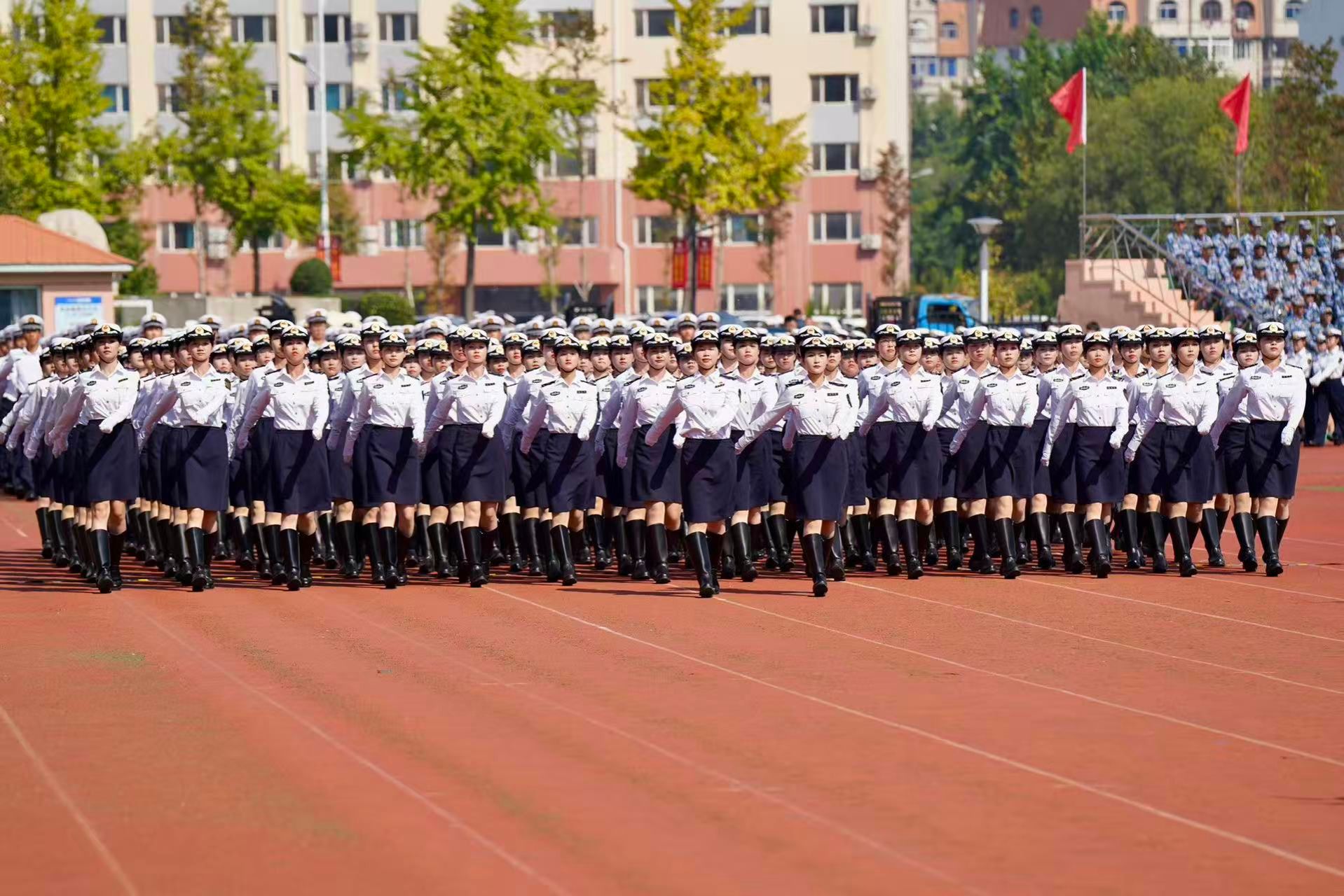 本次军训历时一个月,从基础队列训练到歌咏排练,从单个军人队列动作到联合方队磨合,学院新生在指导员的悉心陪伴下、在教官的严格指导,不畏烈日炙烤,无惧风雨考验:站军姿时的纹丝不动,齐步走时的步伐铿锵,歌咏练习时的声情并茂,在日复一日的坚持中,褪去青涩,渐生坚毅,纪律意识与集体荣誉感在汗水里悄然扎根。