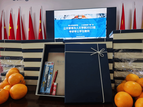 活动现场,学院党委副书记邵丽娜与22中队指导员郑晟亲手将慰问品送到每位学子手中,与大家亲切交流。一句句暖心的询问、真挚的鼓励,让冬日考公考研的学生暖意融融。接过满载关怀的慰问品,人文学子脸上洋溢着感动的笑容:“临近考试压力确实不小,这份慰问让我们感受到了学院的牵挂。尤其是‘心想事成(橙)’的寓意特别暖心,我们一定会把这份鼓励转化为备考动力,全力以赴迎接挑战。”