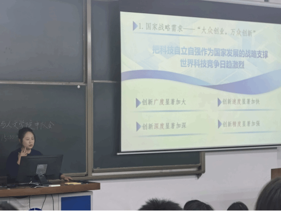 为激励与指导本科新生积极参加,苏畅老师为同学们带来关于该计划的核心内容、申报流程及参与意义的相关分享。她围绕“大学生为何参与大创”“如何通过大创提升自我”等问题讲解,结合众多学长学姐的优秀大创成果,用真实案例激励同学们勇于尝试。同时,当前国家正大力推进科技自强战略,世界科技竞争日趋激烈,大学生作为创新主力军,参与大创不仅能锤炼科研能力、团队协作与问题解决本领,更能响应国家的号召。