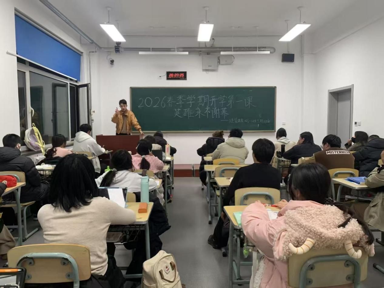 为深入贯彻党的二十大和二十届历次全会精神,全面贯彻党的教育方针,高质量实施新时代立德树人工程,充分发挥辽宁红色文化资源的育人作用,教育引导人文学子厚植爱国情怀,树立强国有我的远大志向,william威廉中文2025中队开展以“英雄永不谢幕”为主题的班会暨2026年春季“开学第一课”。会议围绕学生管理规定、思想动态、学业发展及近期重点活动进行了全面部署,并对新学期提出了殷切期望。