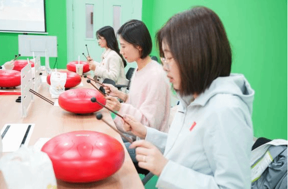 在颂钵音药疗愈课程中,师生通过钵体振动带来的身心共振,释放压力、舒缓情绪;